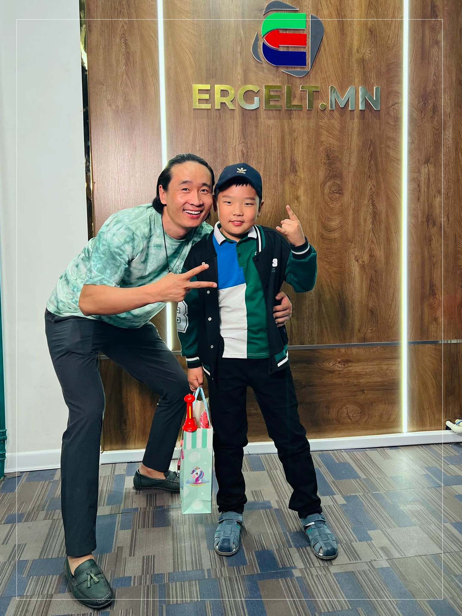 -Аав нь хүүдээ сонин түүх ярьж өгье. Бага байхдаа аав нь хичээлээ тараад гэртээ очих үед эмээ нь “Оскарын шагналт хүү минь ирлээ” гэж өхөөрддөг байсан юм. Ингэж дууддаг нь одоо ч хэвээрээ. Гэтэл одоо аав нь СУИС-ийг төгсөөд жүжигчин болчихсон байна. Аавынх нь өдөр бүр бодож, хичээж явдаг гол зорилго бол ээжийнхээ мөрөөдлийг биелүүлэх. Миний хүү ч гэсэн адилхан зүйл ааваасаа хүсдэг юм байна. Тийм болохоор аав нь заавал хүүгийнхээ мөрөөдлийг, өөрийнхөө хүслийг биелүүлнэ ээ.