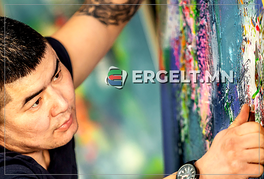 Монголын дүрслэх урлагийн залгамж халаа тэрбээр өнөөдөр буюу энэ сарын 22-нд “Монгол арт” галерейд "Sound of leaves" уран зургийн бие даасан цахим үзэсгэлэнгээ дэлгээд буй бөгөөд үзэсгэлэндээ зориулсан бүтээлээ манай үзэгчдэд зурж үзүүлсэн нь энэ. Өнгөний олон шийдэл, өөрийнх нь толгойд эргэлдэх бодлууд түүний бүтээлд дүрээ олдог. Тиймээс ч тэрбээр “Хийсвэр сэтгэлгээний буюу абстракт уран зургууд нь хэзээ ч дахин давтах боломжгүй, цор ганц бүтээлүүд байдгаараа онцлог” хэмээн ярьсан.