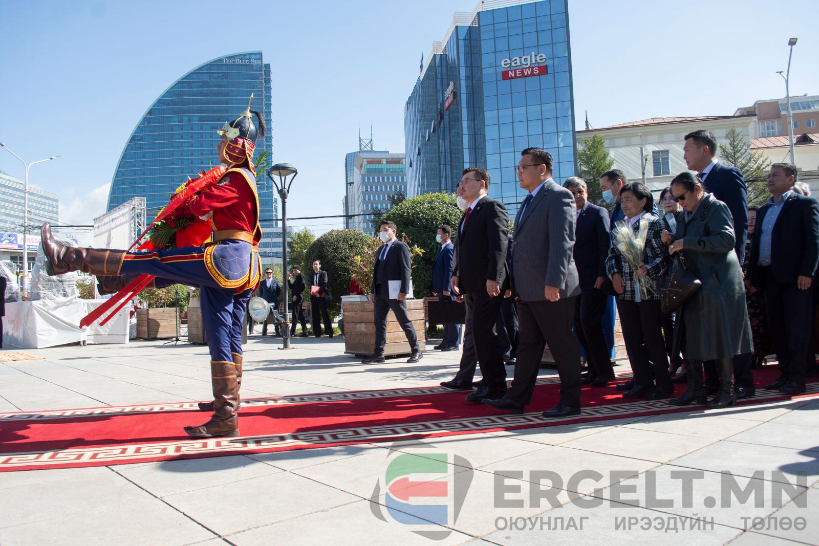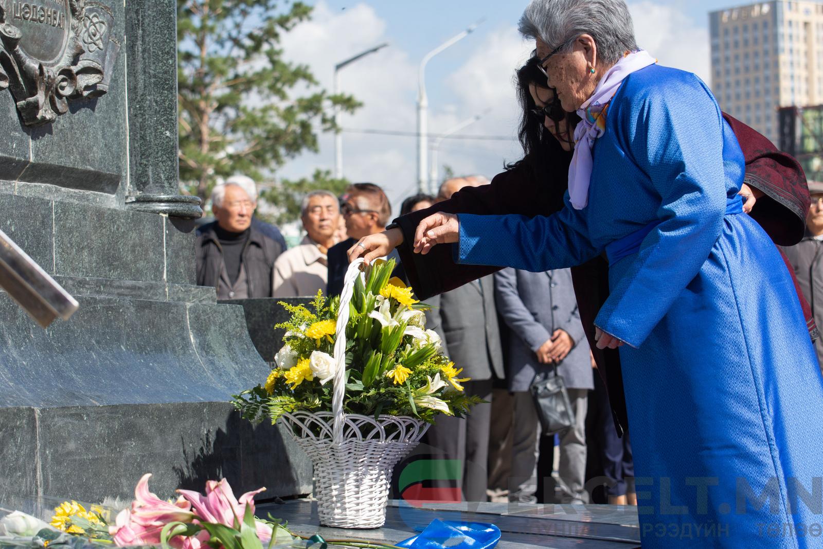 | Монгол Улсын төр нийгмийн нэрт зүтгэлтэн Ю.Цэдэнбалын мэндэлсний 104 жилийн ойг тохиолдуулан түүний хөшөөнд цэцэг өргөлөө |