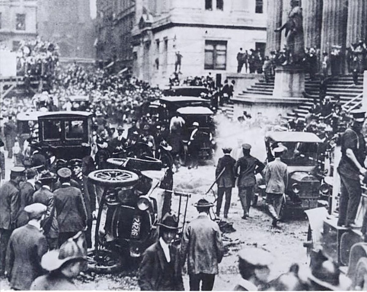 1920 оны есдүгээр сарын 16-ны энэ өдөр АНУ-ын Нью-Йорк хотын хөрөнгийн биржийн төвийн урд Уолл гудамжинд морин тэрэгт хийсэн тэсрэх бөмбөг дэлбэрч, 38 хүн амиа алдсан хэрэг гарчээ. Бөмбөг дэлбэрсэн хэргийн мөрдөн байцаагчид эхэндээ осол байсан байж магад хэмээн мэдээлж байсан юм. АНУ-ын Холбооны мөрдөх товчооноос өнөөг хүртэл бөмбөг дэлбэлсэн хэргийн үнэнийг олж, илрүүлж чадаагүй бөгөөд 1919 онд Америк даяар цуврал аллага үйлдэж байсан анархистуудын хийсэн алан хядах ажиллагаа гэж үздэг байна.