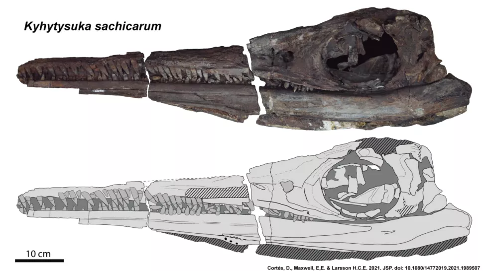 Цэрдийн галавын эхэн үеийн далайн ихтиозаврыг 1960-аад оны үед Колумбийн төв хэсэгт хийсэн палеонтологийн малтлагын үеэр олсон. Тэгвэл 130 сая жилийн өмнө үед хамаарах уг далайн хэвлээр явагчийн бусад ихтиозавраасаа илүү том, хутга шиг шүдтэй, өөр төрөл болохыг шинэ судалгаагаар нээн илрүүлжээ.