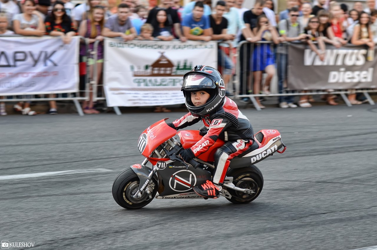Украины хамгийн залуу мотоцикльчин хүү есөн настай бөгөөд Тима Кулешов хоёр настайгаасаа унадаг дугуй унаж, хоёр нас таван сартайдаа мини мотоцикл унаж эхэлжээ. Тэрбээр дөрөвхөн настайгаасаа мотоциклийн тэмцээнд оролцож эхэлсэн ба түүний хамгийн хурдны амжилт нь 72 км буюу 45 миль/цаг хүрдэг байна.
