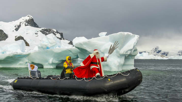 Антарктидэд ихэвчлэн лаазалсан, хөлдөөсөн ногоогоор ширээ засаж, зарим үед “аз таарвал” цацагт хяруул шарж, баяраа тэмдэглэдэг аж. Харин нэгэн удаа Антарктидын хойгийн Кувервилл арал дээр Сантагийн хувцас өмссөн нэгэн эр аяллын хөлөг онгоц хөлөглөн бүх судалгааны станцаар дамжиж, ажилтнуудад бэлэг тараасан юм.