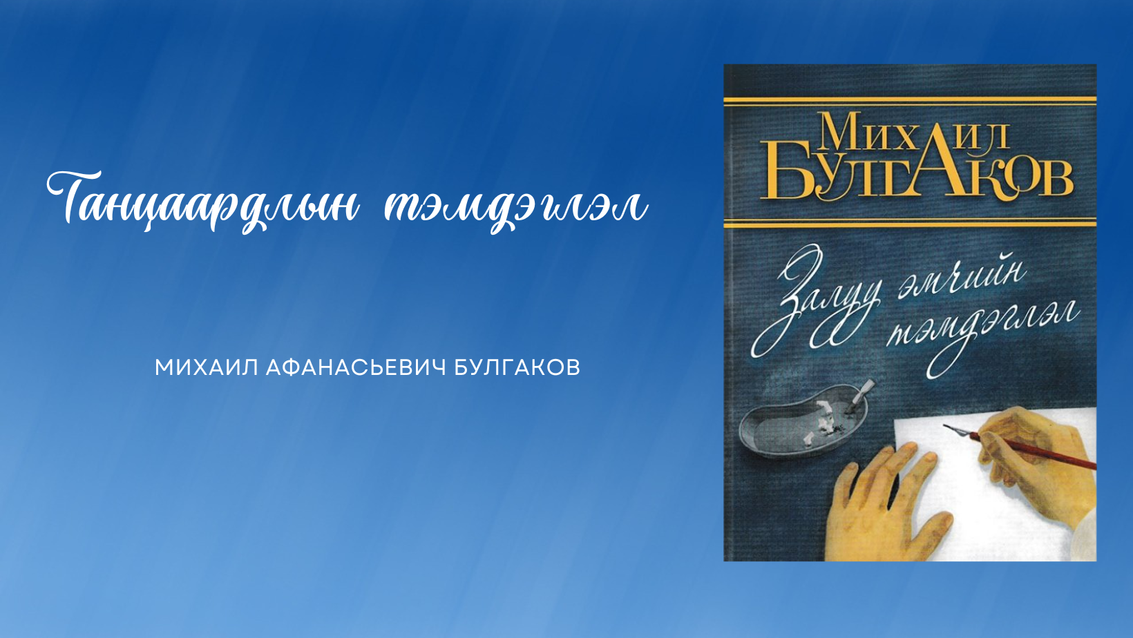 1917 оны хувьсгалын үеийн Орос орон. Хөдөөгийн буйд тосгон, зузаан цасанд хучигдсан дүнзэн байшингууд, керосин дэнгийн бүдэгхэн гэрэл, үстэй хүнд хувцсандаа түүртэх ч үгүй хөдлөх хүмүүс, сүсэгт автаж ахуйдаа мэрэгдсэн иргэд, модон шүүгээ дүүртэл өрсөн анагаах ухааны ном, Москвагаас томилогдож ирсэн залуухан эмч, янжуурын ишээр дүүрсэн төмөр сав, эм бэлдмэл, хагалгааны багаж, шөнөөр улих цасан шуурга, тэрхүү шуургыг нэвтлэн асуй морьдын туурайн төвөргөөн, дөтлөн ирэх аймшигт мэдээ... Энэ бол зохиолч Михаил Афанасьевич Булгаковын “Залуу эмчийн тэмдэглэл” хэмээх тууж, өгүүллэгийн номыг уншсан хэн бүхний тархинд үлдэх зураглал мөн.