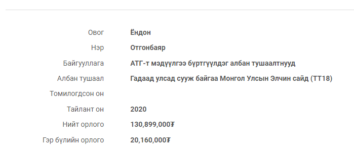 Гэр бүлийн орлого: 20.160.000 төгрөг