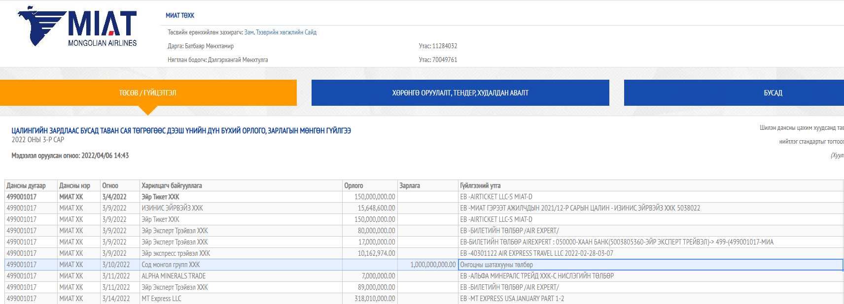 ТАЙЛБАР: "МИАТ" ТӨХК-ИАС "СОД МОНГОЛ ГРУПП" ХХК РУУ 4.0 ТӨГРӨГ ШИЛЖҮҮЛСЭН ЖИШЭЭ...