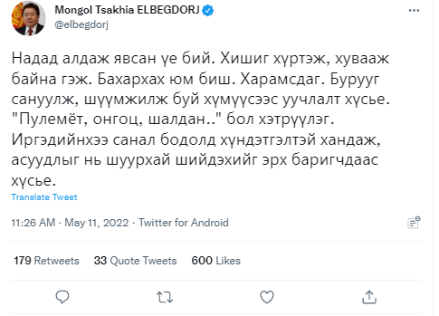 | Ц.Элбэгдорж “автомат буутай анчин” юм бол хуулийн хаагуур сугарч үлдсэн юм бэ, Х.Нямбаатар сайд аа |