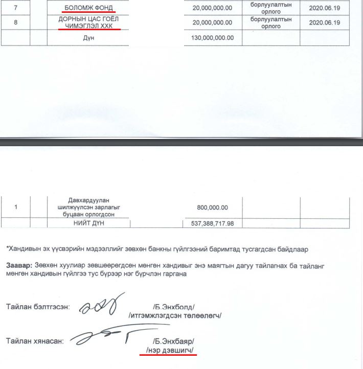 | БАРИМТ: УИХ-ЫН ГИШҮҮН Б.ЭНХБАЯРЫН ХҮРГЭН А.АМАР-ОТГОН ХӨГЖЛИЙН БАНКАНД 3.5 ТЭРБУМ ТӨГРӨГИЙН ЗЭЭЛТЭЙ |