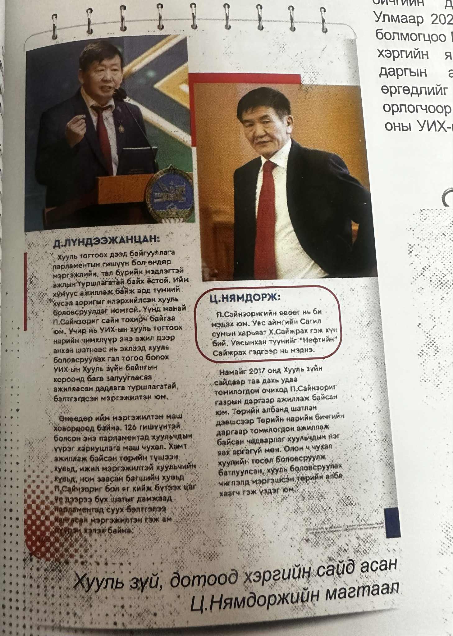 Жилийн дараа буюу 2017 онд Хууль зүй, дотоод хэргийн сайдаар Ц.Нямдорж томилогдсон. Сайд Ц.Нямдорж П.Сайнзоригийг Хууль зүйн бодлогын газрын даргаар нь үргэлжлүүлэн ажиллуулсан. Учир нь, П.Сайнзоригийн аав Н.Пүрэвжав нь хоёр аавтай. Өөрөөр бол, П.Сайнзориг хоёр өвөөтэй. П.Сайнзоригийг өсгөсөн Ж.Нацаг нь аав Н.Пүрэвжавынх нь хойд аав. Харин Н.Пүрэвжавын төрсөн аав нь Увс аймгийн уугуул Х.Сайжрах гэж хүн байсан. Өнгөрөгч УИХ-ын сонгуулийн сурталчилгааны үеэр Ц.Нямдорж “Би П.Сайнзоригийн өвөө, манай Увсын уугуул Х.Сайжрахыг эртнээс мэдэх юм” гэж ярьсан нь бий. Ингэж байтал 2020 онд Хууль зүй, дотоод хэргийн сайдаар Х.Нямбаатар томилогдсон. Х.Нямбаатар П.Сайнзоригийг Хууль зүйн бодлогын газрын даргаар нь ажиллуулж байгаад, 2022 онд Хууль зүй, дотоод хэргийн яамны Төрийн нарийн бичгийн даргаар дэвшүүлэн томилсон. Улмаар 2023 онд Х.Нямбаатар Хотын дарга болмогцоо П.Сайнзоригоор Хууль зүй, дотоод хэргийн яамны Төрийн нарийн бичгийн даргын албан тушаалаас чөлөөлөгдөх өргөдлийг нь өгүүлж, өөрийнхөө Нэгдүгээр орлогчоор “татсан”. Тэгээд зогсохгүй 2024 оны УИХ-ын сонгуулиар Х.Нямбаатар орлогч П.Сайнзоригийгоо өөрийн тойрог болох Сонгинохайрхан дүүрэгтээ нэр дэвшүүлж, УИХ-ын гишүүн болгосон түүхтэй. Өнгөрөгч УИХ-ын сонгуулийн сурталчилгааны үеэр Х.Нямбаатар “Би 2016 онд УИХ-ын гишүүн болчихоод хуулийн төслүүд дээр ажиллаж эхлэх үед шинэхэн гишүүн надад хамгийн их түшиг болж байсан хүн бол П.Сайнзориг. Тиймдээ ч Хууль зүй, дотоод хэргийн сайд болсныхоо дараа нэг баг болж, дараа нь хотод хамтарсан” гэж ярьсан нь бий. Өөрөөр бол, 2016 оноос хойш Х.Нямбаатарын хуулийн төслүүдийг нь бичилцдэг гол хамтрагч нь П.Сайнзориг байсан, тиймдээ ч ачийг нь хариулж Төрийн нарийн бичгийн дарга, дараа нь Хотын нэгдүгээр орлогч, эцэст нь УИХ-ын гишүүн болтол нь “татсан” гэсэн үг.