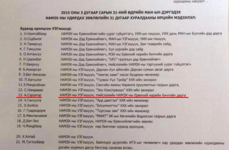 Тайлбар: Нийслэлийн НАМЗХ-ны удирдлагууд, Нарийн бичгийн дарга А.Сэрээтэр