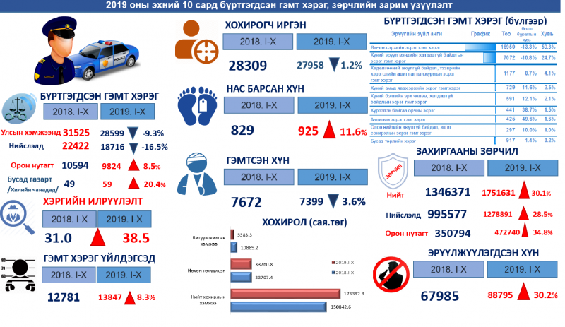 | 2019 оны эхний 10 сарын гэмт хэрэг, зөрчлийн инфографик мэдээ |