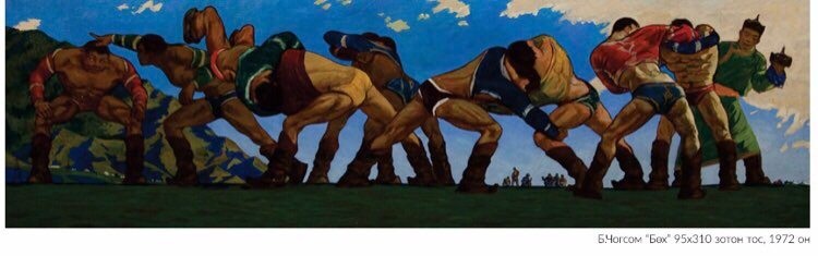 Мөн хэсэг цагаан үүл, цэлмэг хөх тэнгэртэй, ногоон талд ид хаваа гайхуулсан зодог, шуудагтай арван бөх, ногоон дээлтэй засуултай “Бөх” зургийг уншигч та андахгүй мэднэ байх. Зургийн түүх нь их сонин. Анагаахын оюутан байхдаа жил гаруй бөхийн барилдаан үзэж, судалгаа хийж , арай гэж зотонгоо бэлдээд, бүх дүрсээ гаргаад сууж байтал эхнэр нь “Халуун цай уу” гээд аягатай цай өгөхөд нь алдсан аж. Сар гаруй гэрээсээ гарч чадахгүй байж байгаад зургаа дуусгаж, түлэнхий нь эдгэснээр тус бүтээл "төрсөн" байгаа юм. Харин "Тайхар чулуу" бүтээлийн түүх нь түүний бага байхаас үүдэлтэй. Тэрээр энэ талаар "Анх би 1939 онд есөн настайдаа тайхар чулууг харсан юм. Тэр үед хот руу явж байсан машинд 40 хүн сууж явсан. Аав хүмүүст "Энд аварга могойг дарсан юм гэнэ лээ" гээд домгийг нь ярьж өгч байсан. "Би ямар мундаг аварга том могой байсан бол оо" гэж боддог байлаа" хэмээн дурсжээ.