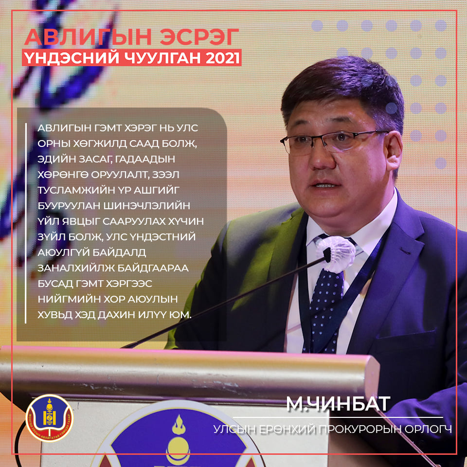Энэ үеэр Улсын ерөнхий прокурорын орлогч М.Чинбат “Гэмт хэргийн улмаас хууль бусаар олж авсан эд хөрөнгө, бэлэн мөнгө, бэлэн бус орлогоор хүлээж авах ажиллагаа явагддаг болсон. Ялангуяа авлигын гэмт хэрэгт банк, томоохон аж ахуйн нэгж, орд газрын хувь эзэмших эрх бэлгэнд авах, түүнийгээ бусдын нэр дээр шилжүүлэх нь ихэссэн. Уг олсон эрхээр дамжуулж ашиг олох, эсхүл хувьцаагаа бусдаар дамжуулан заруулж, оффшор дансанд байрлуулах, өөрийн гэр бүл, хамаатан садан, найз нөхдийн нэр дээр үл хөдлөх эд хөрөнгө, хувьцаа, лиценз худалдан авах зэргээр авлигын хэлбэр дүрсийг хувиргах ажиллагаа ихэвчлэн зохион байгуулалттай явагдаж байна" гэлээ.