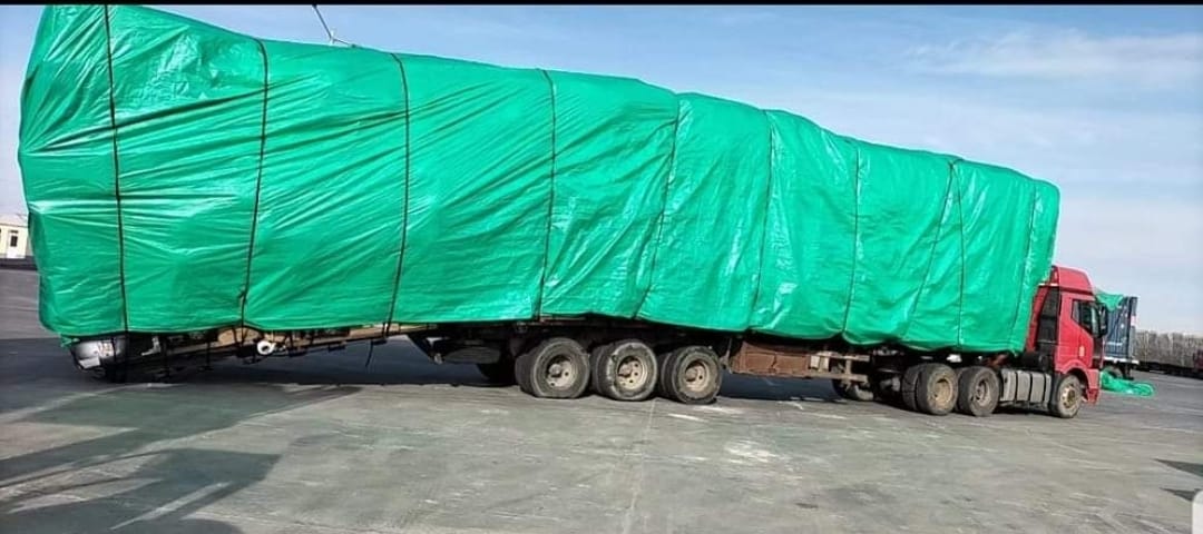 Машины доод талаас нь цаасан хайрцагтай ачаа өлгөж, машины ард талд том дугуй холбож байгаад чиргүүл сунгаж, ачаа ачсан байна лээ. Цаасан хайрцагтай ачаа, бараагаар унжуулсаар л орж ирж байгаа машин олон байна.