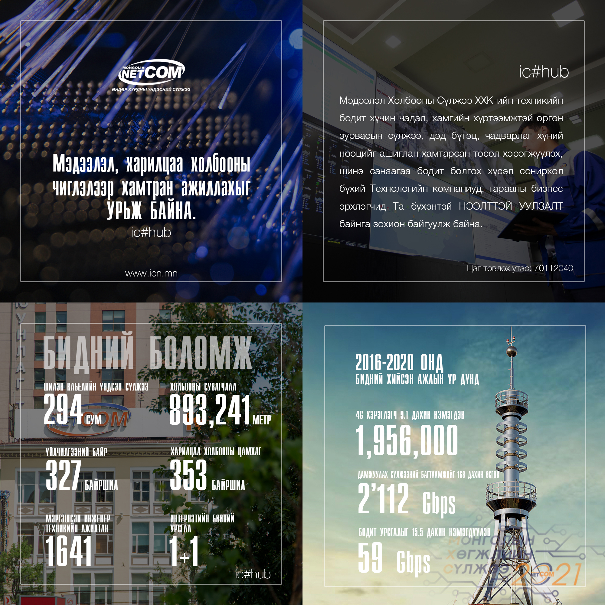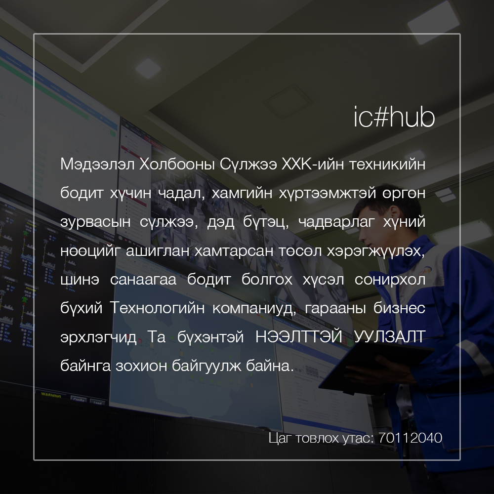 Мэдээлэл Холбооны Сүлжээ ХХК-ийн техникийн бодит хүчин чадал, хамгийн хүртээмжтэй өргөн зурвасын сүлжээ, дэд бүтэц, чадварлаг хүний нөөцийг ашиглан хамтарсан төсөл хэрэгжүүлэх, шинэ санаагаа бодит болгох хүсэл сонирхол бүхий Технологийн компаниуд, гарааны бизнес эрхлэгчид Та бүхэнтэй НЭЭЛТТЭЙ УУЛЗАЛТ байнга зохион байгуулж байна.