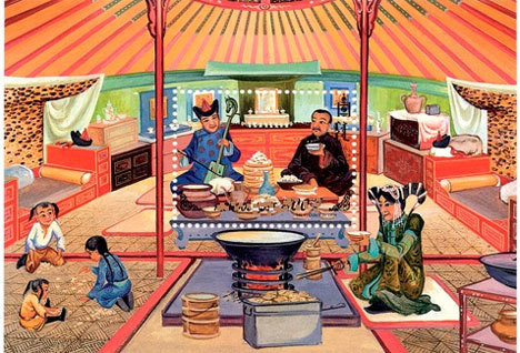 Бөөр, зүрх, давсгийг тод өнгийн шагайгаар төлөөлүүлэн нуруу хэмээн нэрийдэж өрсөн шагайн дээр байрлуулдаг ёстой. Цагаан сарын өдөр тоглоход үүнээс гадна толгой талд улаан будагтай дөрвөн шагайгаар дугуйлан өрж, сүүлийг хар будагтай гурван шагайгаар хийдэг. Мөн зүүн гар талд хөх будагтай таван шагайг нум сумны сүүл хэлбэртэй өрөөд мод гэж нэрлэн, баруун хажуугаас нь тэр сумны үзүүр цухуйсан шинжтэй гурван цагаан өнгийн шагай өрөөд төмөр гэж нэрлэн бас дөрвөн сарвуун дээр нь шороо, огторгуй, уул, салхи гэж тус тус нэг шагай тавьдаг. Ийнхүү цагаан сарын үед нийт 108 шагайгаар тоглодог байна. Шинийн нэгэнд уламжлалт арван хоёр жилийн тоолол ёсоор учран зоолгож буй жилтэй ижил жилтэй хүн буюу жил нь орсон хүн эс олдвол түүнтэй ивээл жилтэй хүнээс эхлэн нар зөв тойрон суусан дарааллаараа шоо хаяг нэг нүх буувал алаг мэлхийн дөрвөн сарвуун дээр тавьсан шороо, огторгуй, уул, салхи гэгдэх шагайны аль нэгийг, гурван нүх буувал дөрвөн сарвуу хэмээн тавьсан шагайнаас дөрвийг буюу галыг, таван нүх буувал мод хэмээгдсэн шагайг тус тус авч тоглодог ажээ.