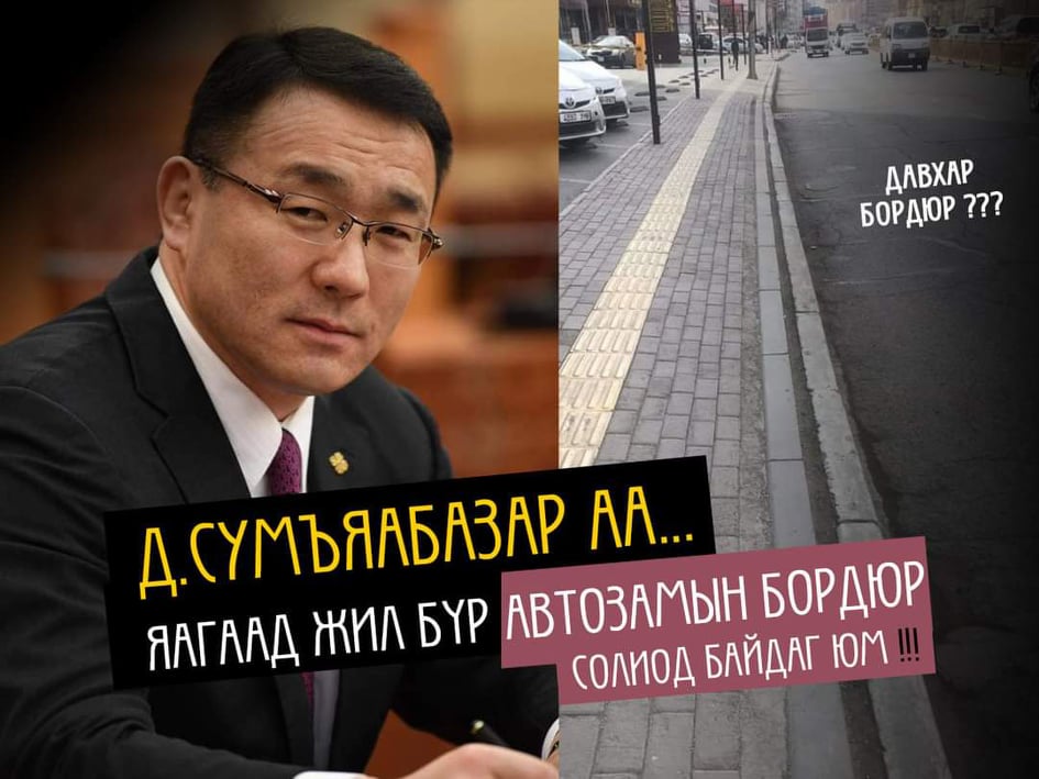 -Болно. Та нээрээ суут ухаантан юм аа” гээд хүмүүс яг бодит байдлыг товч бөгөөд тодорхой илэрхийлчихсэн байна лээ. Яг үнэндээ бидэнд бродюраас илүү сургууль, цэцэрлэг, эмнэлэг, цэцэрлэгт хүрээлэн, дугуйн зам хэрэгтэй байна, Д.Сумъяабазар дарга аа. Эвдрээгүй бродюр солихоо болъё. Бүр давхарлаж тавихаа зогсооё.