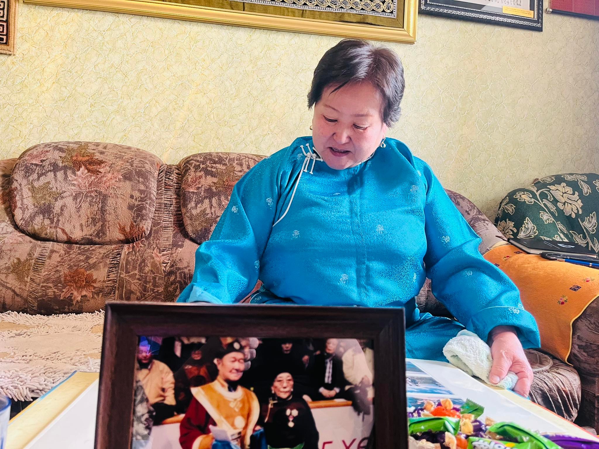 -Сонин юм шүү. Өнгөрсөн цагт талийгаачаас маань ярилцлага авах гэж олон хүн ирдэг байлаа. Би ч тэр бүрд хүний нүдэнд харагдаад яах вэ гээд наагуур, цаагуур явчихдаг байсан. Тэгээд талийгаач минь сэтгүүлчдээс асуултаа аваад, хариултыг нь бэлдээд, харуулж сонирхуулах, үзүүлэх дурсамж дурдатгалаа бэлдчихээд бор буйдан дээрээ сууж байдаг байлаа. Бичиж тэмдэглээд, дэвтрээ гаргаж ирээд бараг харахгүй шахуу л цэгцтэй нь аргагүй ярьчихдаг байсан. Ханийгаа ярилцлага өгөхийг хэд хэдэн удаа хажуугаас нь харж байсан юм болохоор ямартай ч тэмдэглэлийн дэвтэр, хоёр, гурван зургийн цомгоо бэлдчихээд сууж байна. Бардаг байгаа даа л гэж айх юм. Би ч тэр хүний хэмжээнд ярина гэдэг худлаа. Харин тэр хүнийг дурсаж ярьж бол чадах байх гэсэн дээ ярилцлага өгье шийдлээ.