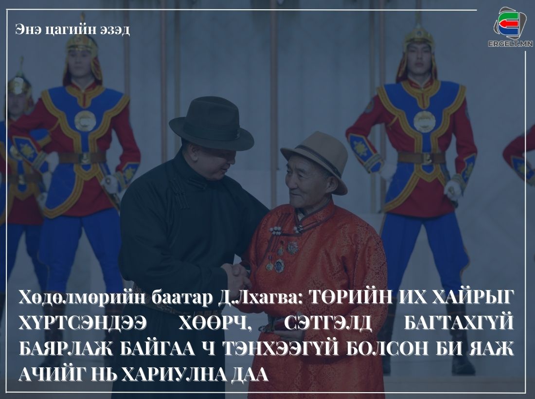 | Хөдөлмөрийн баатар Д.Лхагва: ТӨРИЙН ИХ ХАЙРЫГ ХҮРТСЭНДЭЭ ХӨӨРЧ, СЭТГЭЛД БАГТАХГҮЙ БАЯРЛАЖ БАЙГАА Ч ТЭНХЭЭГҮЙ БОЛСОН БИ ЯАЖ АЧИЙГ НЬ ХАРИУЛНА ДАА |