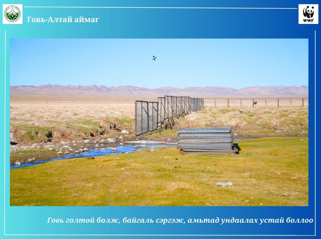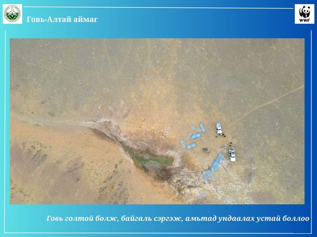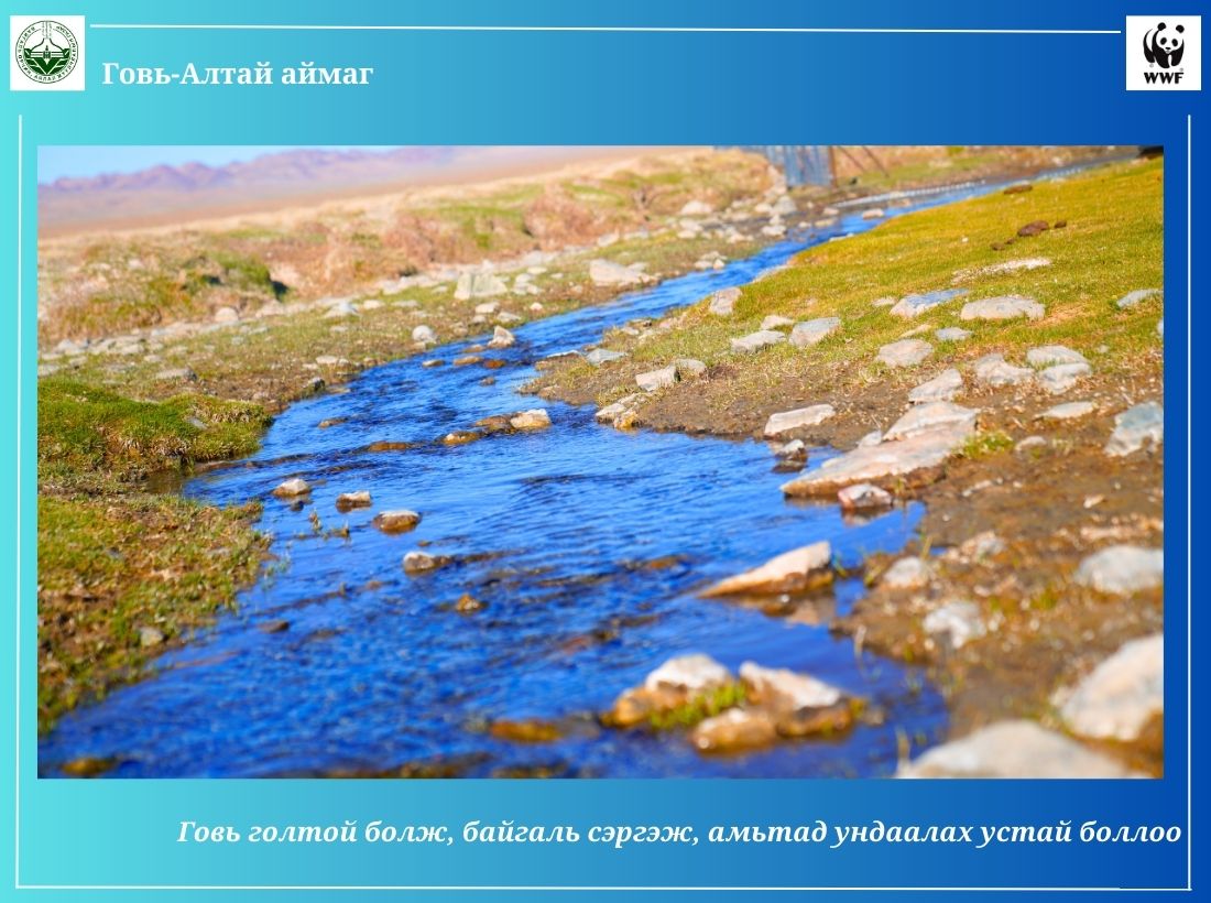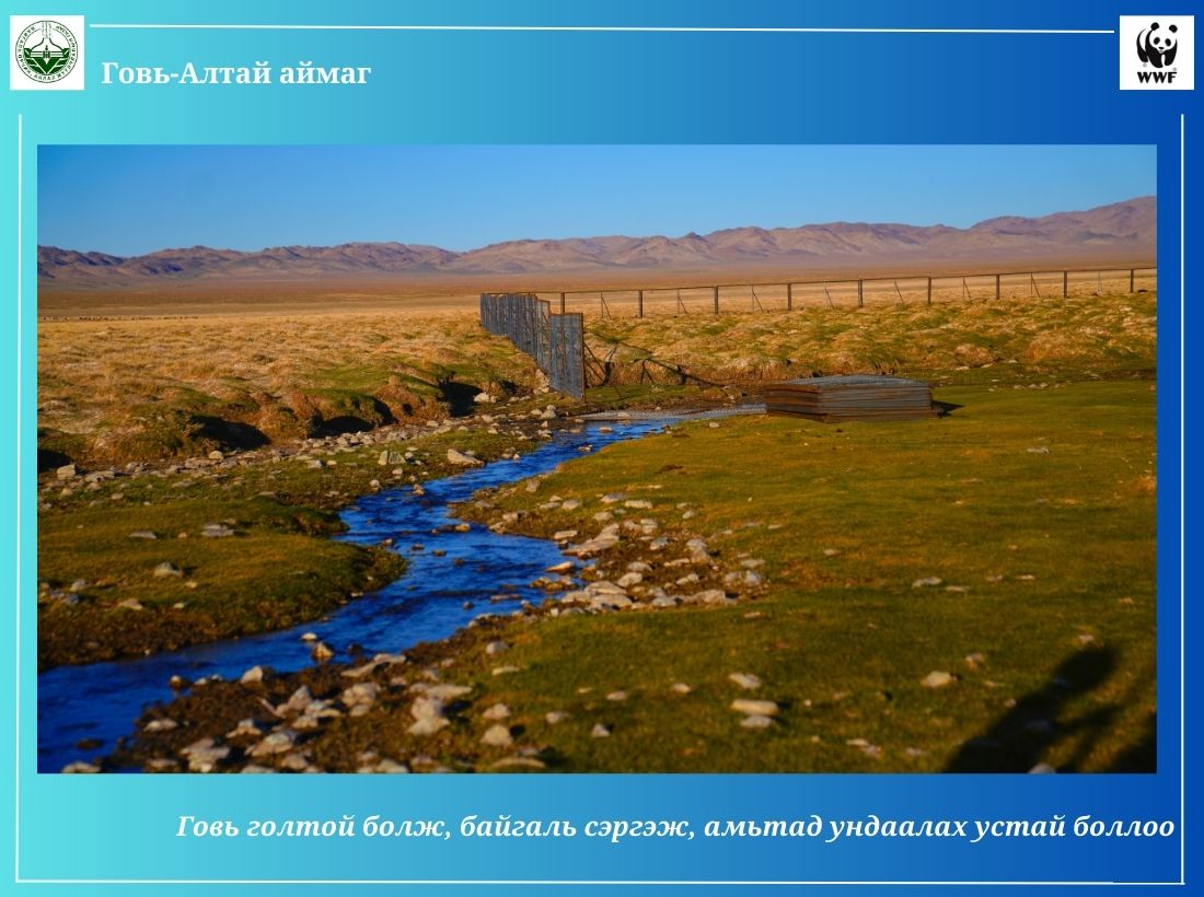 -Говь-Алтай аймгийн хувьд усны тооллого, судалгаа, цөлжилтийн судалгаа гээд олон тооны ажлыг хийсэн. Энэ судалгааны хүрээнд Говь-Алтай аймагт 1322 булаг, шанд тоологдсон. Мөн тооллогот орсон булаг, шанданд судалгаа хийсэн. Эхний ээлжинд хаши,ж хамгаалах шаардлагатай булгуудын судалгааг гаргасан. Ингэснээр 2004-2023 он хүртлэх хугацаанд 204 булгийн эхийг орон нутаг, улс, олон улсын байгууллагуудын төсөл хөтөлбөрийн санхүүжилт, дэмжлэгээр хашиж, хамгаалсан. Дэлхийн хэмжээнд байгаль орсныг хамгаалах чиглэлээр тэмдэглэдэг олон өдөр байдаг. Харин булаг хамгаалах өдөр гэж байхгүй. Манай аймаг анх удаагаа булаг хамгаалах өдөртэй болж, тэмдэглэж байна. Энэ өдөр хашсан булаг, шандаа эргэж, засаж сэлбэх ажлыг гүйцэтгэдэг. Хамгаалсан булгийнхаа эхэнд жил бүр судалгаа хийж, энэ ажлынхаа үр дүнтэй танилцах гэх мэт ажлыг булгийн өдрөөр хийдэг. 2023 онд Дэлхийн байгаль хамгаалах сантай хамтраад аймгийн БОАЖГ, сумдууд, иргэд, малчид маань 17 булгийн эхийг хашиж, хамгаалах ажлыг х ийж байна. Уг ажилд 200 гаруй сая төгрөгийг төсөвлөж, санхүүжилт гаргасан. Уг ажилд нутгийн иргэд, малчид маань идэвхи зүтгэлтэй оролцож байгаад талархаж байна. Цаашлаад хашиж, хамгаалсан булгийн нутагт амьдарч байгаа малчдаар нь булгийг эзэмшүүлэх ажлыг зохион байгуулж байна. Малчдыг судалгаа хийлгэх ажил чадавхжуулж, булаг хамгаалах ажилд мэрэгшүүлж байна. Говь-Алтай аймаг Хүйсийн говь, Шаргын говь гээд хоёр том говьтой. Энэ хоёр говьд ямар нэгэн байдлаар урсгал гол байдаггүй. Тийм учраас гадаргын усаа нэмэгдүүлэх чиглэлээр хатаж, ширгээд, цөлжилтөд өртөөд байгаа нэн шаардлагатай булгийн эхийг хамгаалах хэрэгтэй. Хашиж, хамгаалсан булгууд маань говьд бол гол гэсэн үг. Зохих хэмжээнд хашиж, хамгаалаад ирэхээд булгууд маань 2-4 километр хүртэл урсаж байна. Булгийн эхийг хашиж, гадаргын усыг нэмснээр байгаль дээр байгаа бүхэл амьд амьтан ундаалж байгаа сайхан ажил гэж бид бүхэн үзэж байгаа. Цаашид ч олон булгийг хашиж, хамгаална гэж зорьж байна. 2023-2027 оны хугацаанд 100 булгийг хашиж, хамгаалах зорилт тавин ажиллаж байна.
