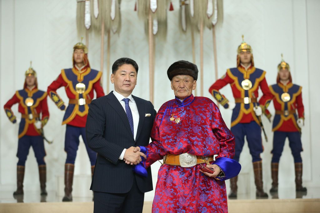 “Зах зээлийн нийгэмд шилжихэд хүн тус бүрд адилхан тооны мал өгч байсан гэдэг. Та хэчнээн толгой мал авч тусдаа гарсан юм бэ” гэхэд “Манай энд хүн тус бүрд 30 толгой мал өгсөн. Харин манайд 30 толгой хүрэхгүй мал өгч байсан. Миний санахаар таван тугалтай үнээ, хоёр адуу, ишигтэй ямаа тав, хургатай хонь 10 орчмыг өгч байлаа. Тухайн үед нэг уут гурилыг тугалтай үнээгээр, боодол улаан тамхийг ишигтэй ямаагаар сольдог байсан. Яг адилхан хуваасан 30 толгой малыг хэн хариуцлагатай харж, хөдөлмөрлөсөн нь л хожсон болов уу гэж боддог. Тэр үед юм ховор хэцүүхэн цаг үе байсан ч өөрийн өмчийг зарж, ашиглана гэхээр сэтгэл амар байсан. Нэг хонь үхсэн ч “Чамаас авна” гэж шаардахгүй хэчнээн сайхан гээч. 1990-ээд оноос хойш хэдэн малаа өсгөх гэж зүтгэсэн. Ганзагын наймаа хүртэл хийж явлаа. Ингээд 2005 он гэхэд хонин сүрэг 5000 хүрч, улсын сайн малчин болсон. Олон хонь нэг дор хариулна гэдэг амаргүй. Ийн ярьж сууснаа “Өнгөрсөн хугацаанд бид 30 гаруй айл малжуулсан. Тэд маань сайн ч хөдөлмөрлөсөн, цөм сайхан амьдралтай болсон. Манай сумаас улсын сайн малчин, аймаг сумын аварга малчин төрсний олонх нь миний шавь. 2012 онд сарлагийн тоо 1500-д хүрч, Түмэн сарлагийн баяр хийж байсан. 2019 оны зуднаар манай сумын олон мал хоргодсон ч би нэг ч тугалны гарзгүй өвлийг өнөтэй давж байлаа. Сарлаг маллахыг хүмүүс амархан гэж боддог юм. Уул бараадуулаад хаячихдаг юм шиг л санана. Тийм биш шүү дээ. Үүрийн жингээс үдшийн бүрий хүртэл морин дээрээс буухгүй шогшиж өдийг хүргэсэн. Идэш тэжээлийг нь тааруулж, хэвтэр, өтөг бууцыг нь бэлдэхээс эхлээд толгой тавих завгүй ажиллана шүү дээ. Би Хөдөлмөрийн баатрын тэмдгээ үхрийн баасан дотроос л “олсон” гэж боддог юм. Үхрийн баас цэвэрлэхэд зориулсан цаг хугацаа энэ алдар хүндийг надад аваад ирж байгаа юм. Хөдөлмөрийн баатрын тухайд 2021 оны арванхоёрдугаар сард Ерөнхийлөгчийн Тамгын газраас ярихад нь гавьяат болох гэж байгаа юм байна гэж ойлгохгүй юү. Төрийн ордны тэмдэг гардуулдаг хэсэгт нь Алтан гадас, Хөдөлмөрийн гавьяаны улаан тугийн одон авах дүүрэн л хүн байлаа. Гэтэл улаан хавтас барьсан залуухан эмэгтэй ирээд “Та Хөдөлмөрийн баатар болох юм байна” гээд гурван хүнтэй тусад нь суулгасан. Тэмдгээ гардаж авах хүртлээ өөртөө итгээгүй. Ерөнхийлөгчийн хажууд зогсохоор эрхгүй л “Нутаг ус, ижий аавын минь буян заяа түшлээ дээ гэж бодогддог юм билээ” гээд санаа алдав.