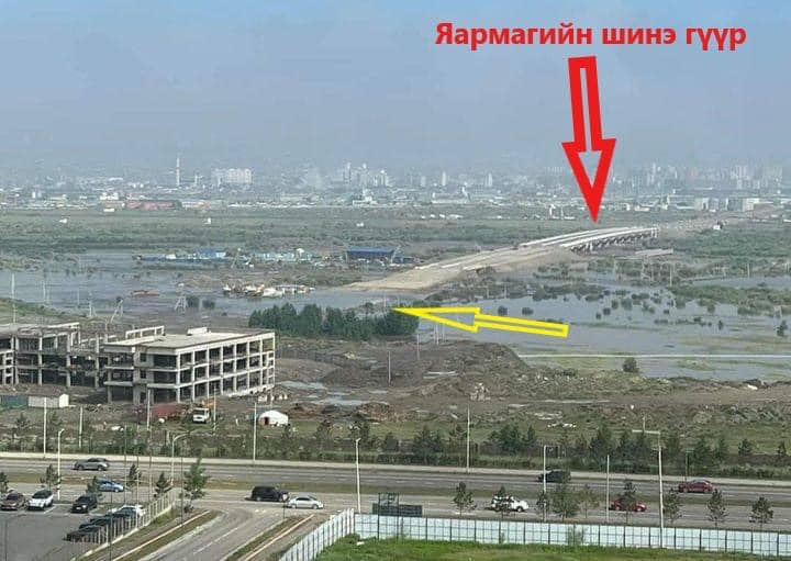 “Яармагийн шинэ гүүр усанд автаж, хүн, машин зорчих ямар ч боломжгүй боллоо. Гүүрний талыг нь идчихжээ. Дахиж нураагаад, шинээр байх гэнэ. Улсын төсвийг усанд урсгачихлаа. Зураг төсөл, ТЭЗҮ нь буруу гарч, стандарт алдагдаж гэнэ. Яармагийн шинэ гүүр Туулын урсгалыг боосон байжээ” гэх мэдээлэл цахим сүлжээнд хөвөрч байхтай зэрэгцээд бид өчигдөр Хан-Уул дүүргийн 12 дугаар хороо, Яармагийн шинэ гүүрний урд хэсэгт очлоо.