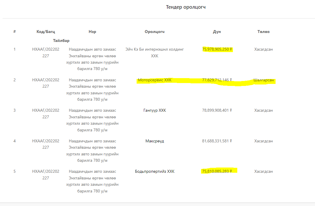 ТЕНДЕРТ ОРОЛЦСОН КОМПАНИУДЫН МЭДЭЭЛЭЛ.