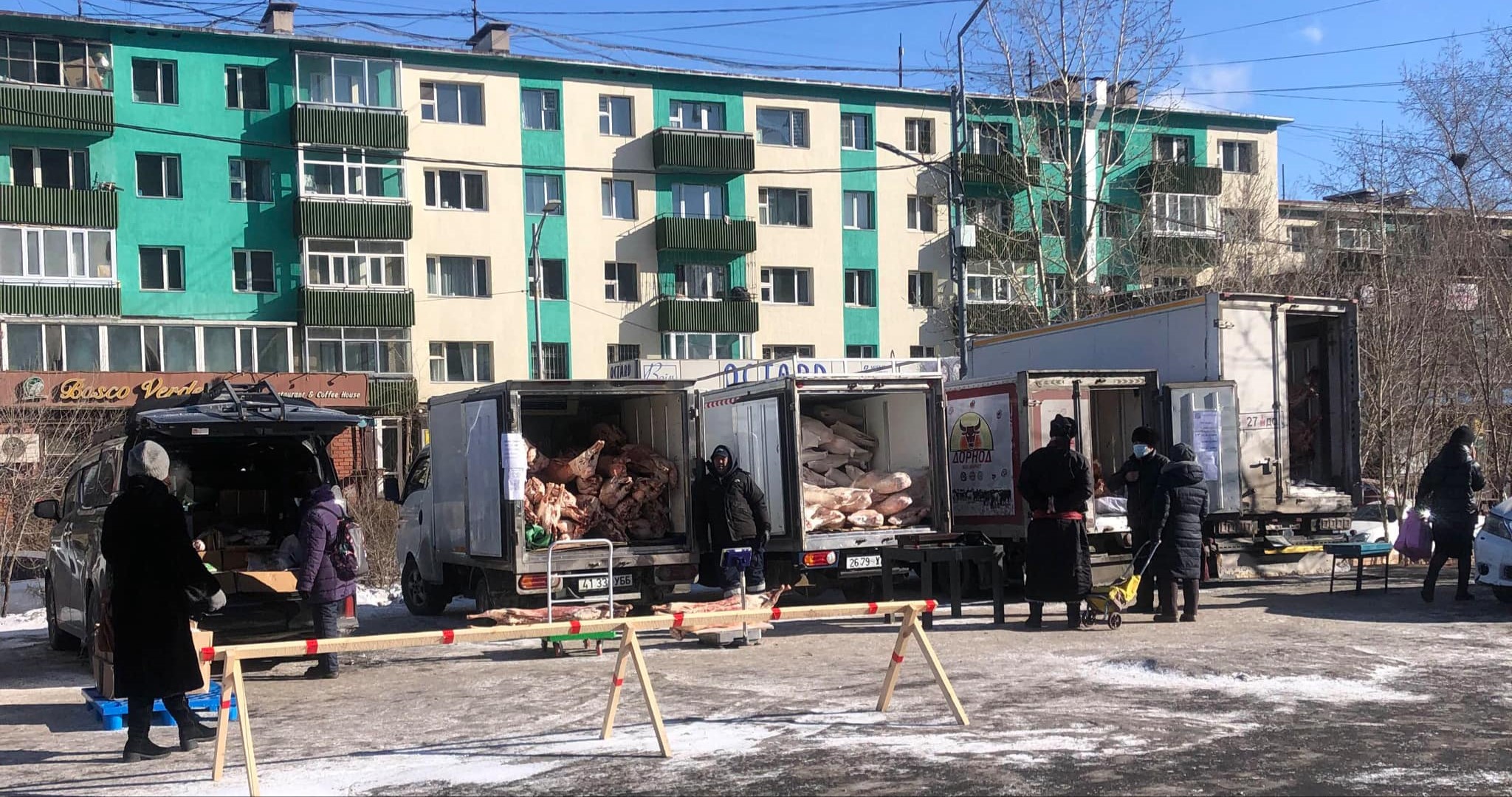 "Аса арена"-ийн гадна талбайд махны үзэсгэлэн худалдаа гарчээ. Цагаан сарын баяр болж, айлууд бууз, баншны махныхаа эрэлд гарсан учир бид махны үзэсгэлэн худалдааг зорьж очлоо.