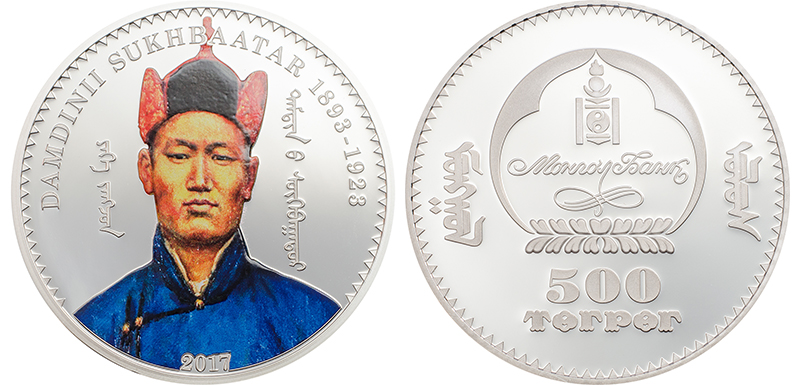 2021 оны хоёрдугаар сарын 2-нд Ардын төр засгийг үүсгэн байгуулагчдын нэг, цэргийн нэрт гарамгай жанжин Дамдины Сүхбаатарын мэндэлсэн өдрийг тохиолдуулан гаргасан дурсгалын зоос нь 50 грамм жинтэй, 50 мм-ийн хэмжээтэй, мөнгөөр бүрсэн зэс зоос бөгөөд 2017 онд анх худалдаанд гаргаж байжээ.