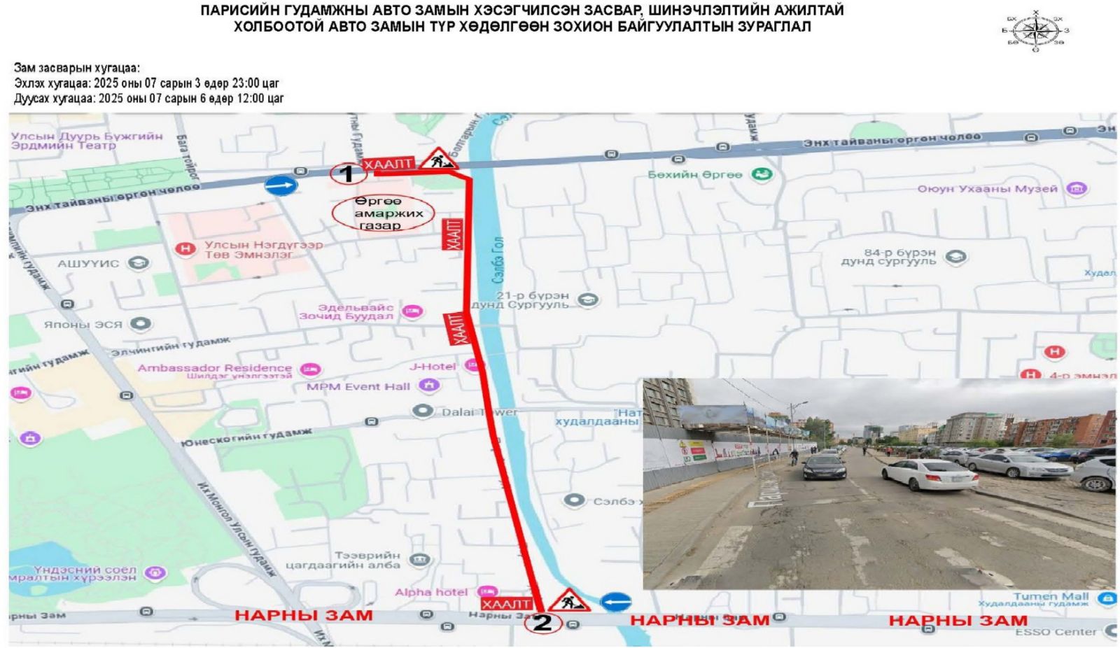 | Өргөө амаржих газрын уулзвараас Нарны зам хүртэлх замыг хааж шинэчилнэ |
