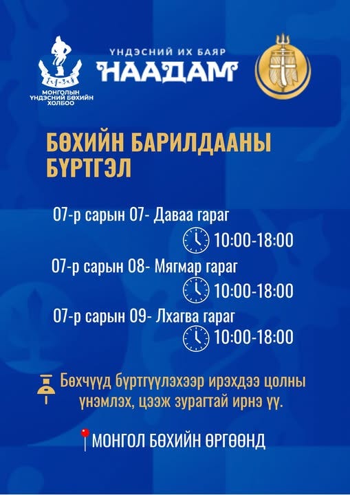 | Үндэсний их баяр наадамд зодголох бөхчүүдийн бүртгэл даваа гарагт эхэлнэ |