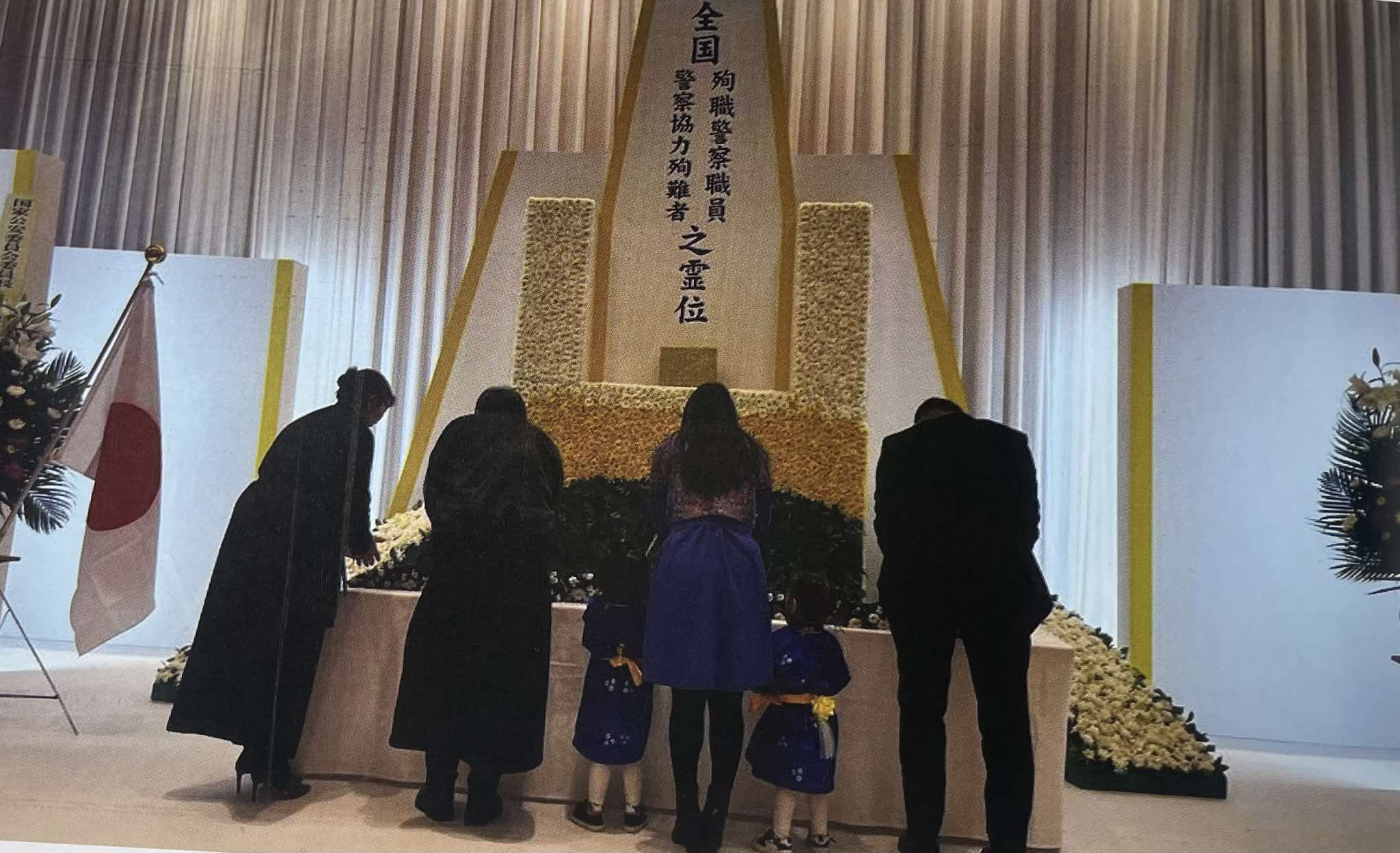 Японы Ерөнхий сайд Ш.Ишиба “Гэр бүлээ алдсан ар гэрийнхний уй гашууг бодохын төдийд л элэг эмтэрч, гүн харамсал төрж байна. Эмгэнэл илэрхийлж буйг минь хүлээн авна уу. Амь үрэгдэгсдийн сүнс тайван нойрсож, ар гэрийнхэн нь амар амгалан байхыг хүсэн ерөөе” гээд удтал мэхийн ёсолж, хүндэтгэл илэрхийлсэн. Бусдын амь, эрүүл мэнд, эд хөрөнгийг авраад өөрсдөө үрэгдсэн баатарлаг хүмүүсийг Японы Засгийн газар “Цагдаагийн албан хаагчийн үүргийг эр зоригтойгоор гүйцэтгэж, бусдын алтан амийг аварсан баатарлаг үйлстэн” хэмээн тунхаглаж хүндэтгэл үзүүлдэг юм байна. Миний хүүгийн нэр Хүндэтгэлийн самбарт томоос том бичигдэж үлдсэн. Би тэр үед хүүгээ хэчнээн их санаж бас бахархаж байсан гэж санана. Хүүгийн минь баатарлаг үйлийг алдаршуулж, тамгалж үлдээх ажлыг Канагава мужийн Цагдаагийн газар, Цагдаагийн нийгэмлэгийн холбогдох ажилтнууд санаачлан хийсэн байна лээ. Ингээд миний хүүгийн охидод насанд хүртэл нь тэтгэмж олгохоор болсон. Аав нь эзгүй болсон үр хүүхдэд дэм тус хэрэгтэйг ойлгож, бүрэн дэмждэг хөгжилтэй улсын бодлого сайхан юм билээ. Бид хүүгийнхээ амиа алдсан Сагами голын эрэг дээр хүрэх хүсэлтэй байгаагаа хэлсэн юм. Монгол Улсаас Япон Улсад суугаа ЭСЯ-ныхан бидэнд чадах бүхнээрээ тусалж, бүх зүйлийг минь амжуулж өгсөн. Хүүг амиа алдах үед Сагами гол үертэй байсан юм билээ. Харин биднийг очиход намдуухан, хайрга, элс нь харагдаж байсан.