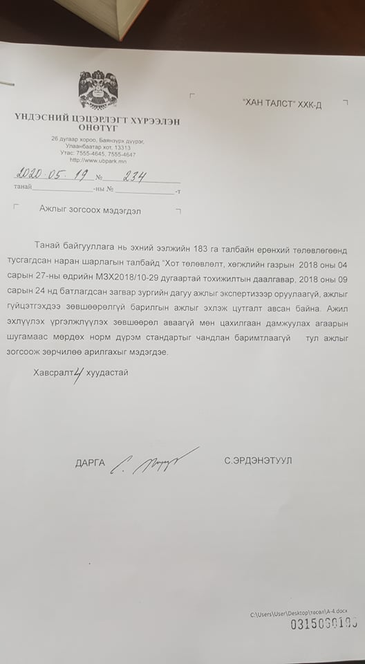 | ҮЦХ-гийн захирал С.Эрдэнэтуул “Ханталст” компанийн үйл ажиллагааг зогсоож, газраа эргүүлэн авах хүсэлтийг удаа дараалан гаргаж байжээ |