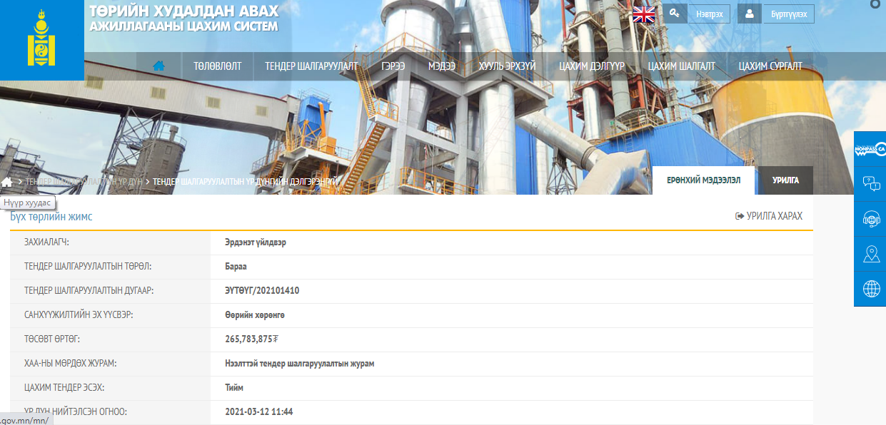 "Эрдэнэт" төрийн өмчит үйлвэрийн захирал Х.Бадамсүрэнг жигнэмэг 105 сая, задгай хар чавга 48 сая төгрөгөөр авах тендер зарласан тухай мэдээлсэн билээ. Тодруулбал, жигнэмэг худалдан авах тендерийн хугацаа дуусаж, өнгөрсөн нэгдүгээр сард худалдан авсан байв. Харин задгайгаар хар чавга авах тендер нь удахгүй хаагдах байсан юм. Тэгвэл энэ удаад нэг удаагийн жимстэй, "хаан", "хаантан", "хатан", "hyson berry vera", солонгос холимог самартай, ногоон, гурвалжин будаатай, зэрэг 60 орчим төрөлд хуваагдах олон янзын сав баглаа боодолтой цайг гэрээний дагуу үйлдвэрийн агуулахад авахаар төлөвлөгөө боловсруулсан байна. Үүнд зориулж 107.928.588 төгрөгийг төсөвлөж, тендер зарласан аж. Одоогоор тендерийн хугацаа дуусаж, бичиг баримтын төлөвт үр дүн гарсан гэх боловч тендерт оролцсон нэг “Ранчо” гэх компани нь хасагдсан байна.