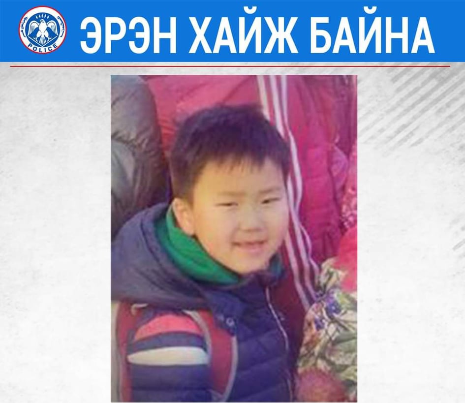 Хүүг харсан хүн байвал цагдаагийн байгууллагын 102, 94164001 дугаарт мэдээлэл өгнө үү.