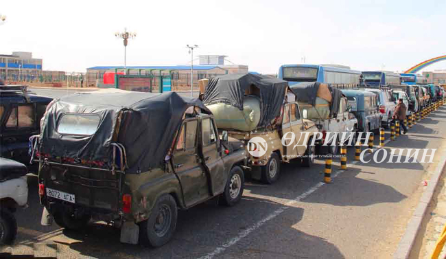 Хилийн цэргийн алба хаагчид зохицуулалт хийж, “Та нар яагаад үхэх гэж байгаа юм шиг дайраад байгаа юм бэ. Эгнээндээ ороод яв. Чи дээр бас яг ингэж дайрч байгаад л орсон биз дээ. Одоо чамайг оруулахгүй. Харж байгаарай чи” хэмээн жолооч нарыг загнах. Замын эсрэг урсгалыг хүртэл хаагаад зогсчихсон машинуудыг 08:00 цагаас эхлэн арав арваар нь хилийн бүс, боомтын хашаа руу нэвтрүүллээ.