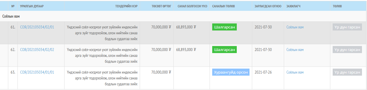 Тодруулбал, Соёлын яамны албан ёсны вэб хуудасны “ТЕНДЕРИЙН УРИЛГА” хэсэг рүү нэвтэрч орвол 2021 онд улсын төсвийн хагас тэрбум төгрөгийн хөрөнгөөр дөрвөн тендер зарласан гэж бүртгэжээ.