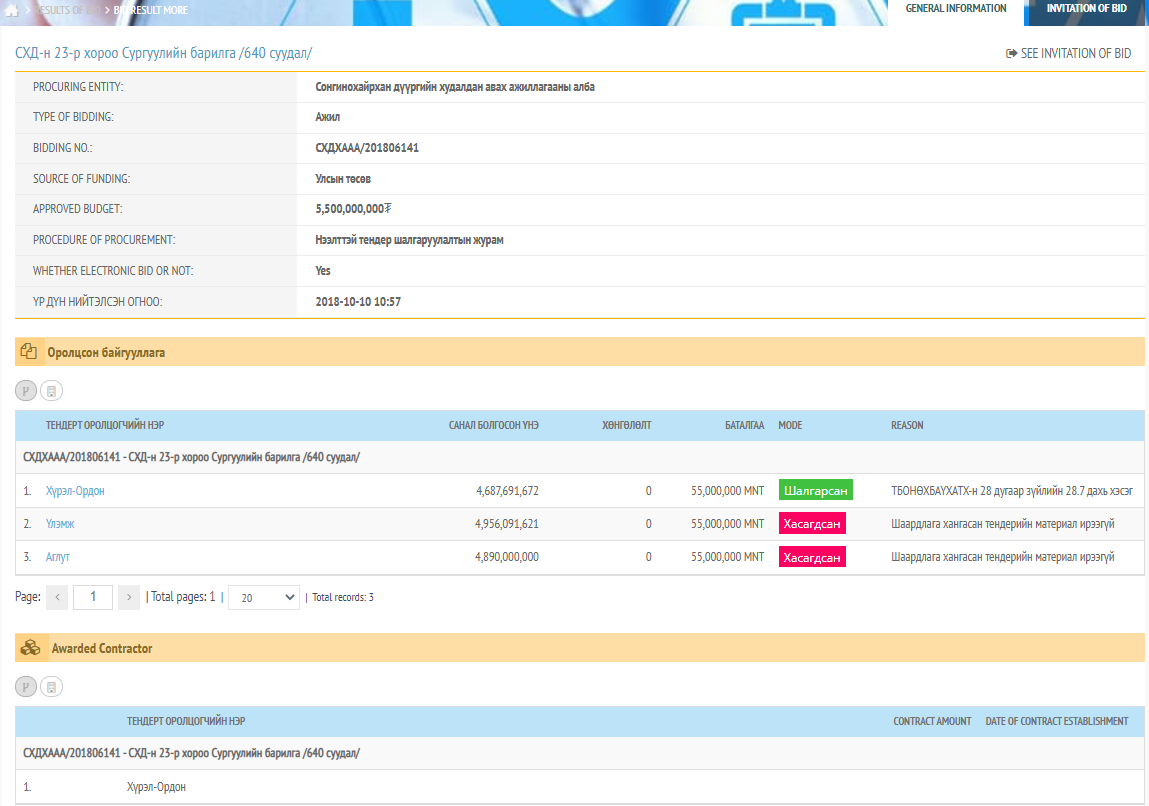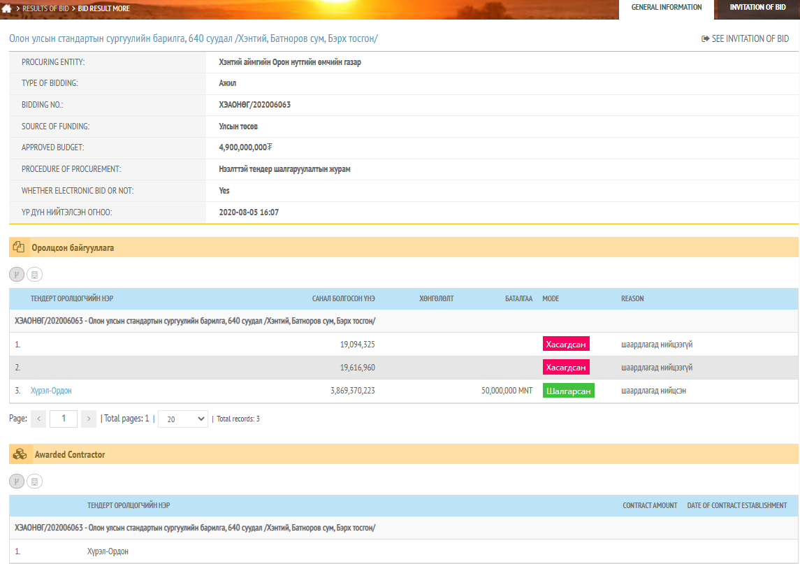 Түүнчлэн өнгөрсөн оны долдугаар сард Хэнтий аймгийн Батноров, Бэрх тосгонд 640 хүүхдийн сургууль барих 4.0 тэрбум төгрөгийн тендер, Батноров, Бэрх тосгоны Ерөнхий боловсролын сургуульд олон улсын стандарт нэвтрүүлэг бэлтгэл ажлыг хангах 1.0 төгрөгийн тендерт тус тус шалгарч байжээ.