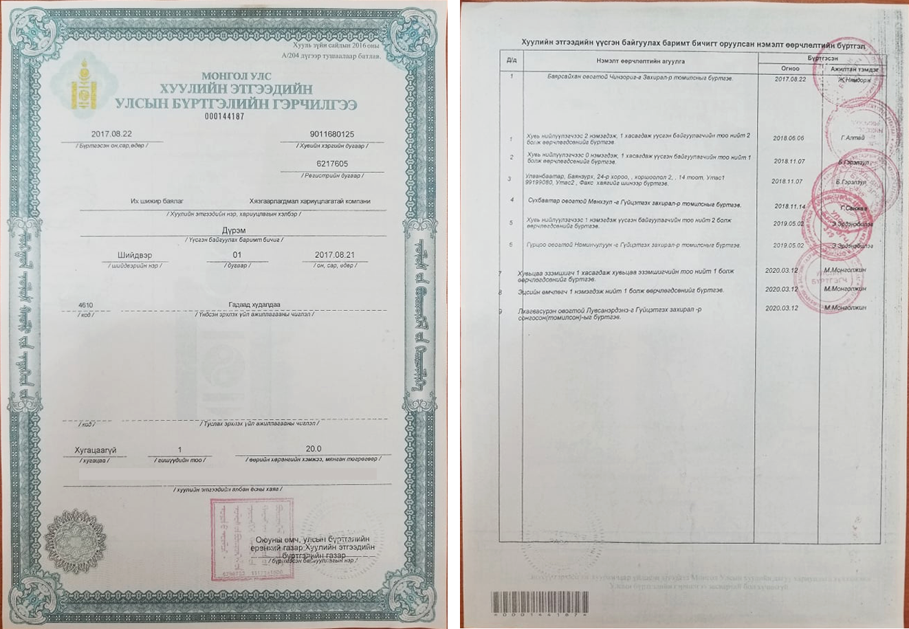 Түүнчлэн тус компани “Улаанбаатар хот, Сүхбаатар, 8-р хороо, 910, 911 тоот” хаяг дээр бүртгэлтэй байдаг бөгөөд энэ хаяг дээр хятадын хөрөнгө оруулалттай “Шаганрийч ворлд монголиа” ХХК, хятадын хөрөнгө оруулалттай “Си Эм И Эс” ХХК, “М-Си-Эс холдинг” ХХК-ийн эзэмшлийн “Юнисервис солюшн” ХХК-иуд тус тус давхар бүртгэлтэй байна. “Юнисервис солюшн” ХХК-ийн хувьд “М-Си-Эс” группийн охин компани бөгөөд “Энержи ресурс” ХХК-ийн кеп, “Хүннү Молл”, “М-Си-Эс” групп, “Шангри-Ла-УБ”-ийн цэвэрлэгээ, үйлчилгээг хариуцдаг ажээ.