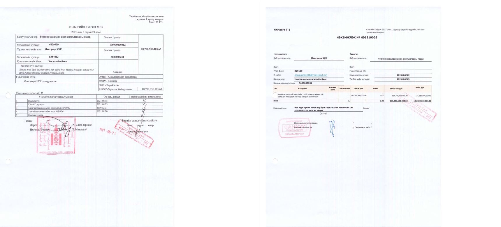 ТАЙЛБАР: БАЯНХОНГОР-АЛТАЙ ЧИГЛЭЛИЙН АВТОЗАМЫН ГҮЙЦЭТГЭГЧ "МАКС РӨҮД" ХХК-ИЙН ТӨЛБӨРИЙН НЭХЭМЖЛЭХ ХУУДАС