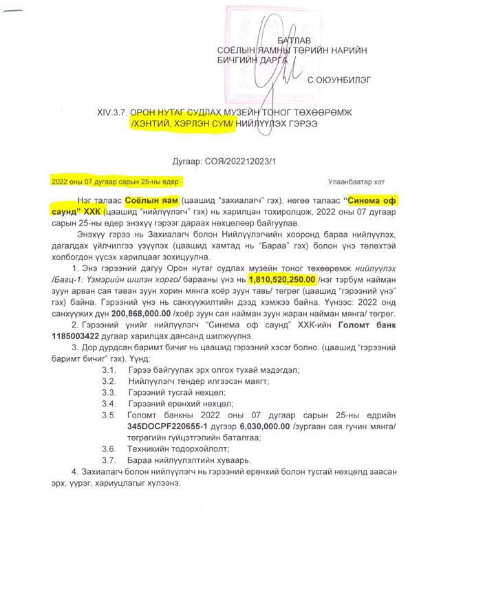 222233УИХ-ЫН ГИШҮҮН Ж.ЗОЛЖАРГАЛ АХДАА ТЕНДЕР ОЛЖ ӨГДӨГ ИНЖЕНЕР ҮҮ