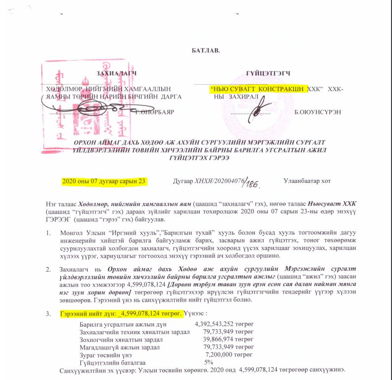 222233УИХ-ЫН ГИШҮҮН Ж.ЗОЛЖАРГАЛ АХДАА ТЕНДЕР ОЛЖ ӨГДӨГ ИНЖЕНЕР ҮҮ