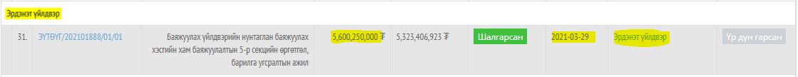 | З.МЭНДСАЙХАН ХХААХҮ-ИЙН САЙД БАЙХДАА “ЭРДЭНЭТ ҮЙЛДВЭР”-ЭЭС 5.6 ТЭРБУМ ТӨГРӨГИЙН ТЕНДЕР АВЧ АМЖЖЭЭ |