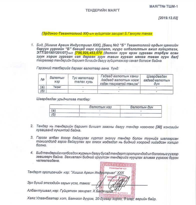 222233УИХ-ЫН ГИШҮҮН Ж.ЗОЛЖАРГАЛ АХДАА ТЕНДЕР ОЛЖ ӨГДӨГ ИНЖЕНЕР ҮҮ