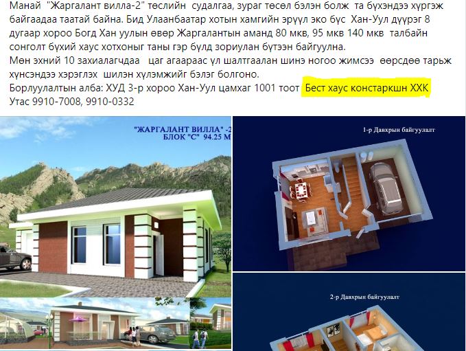 | Б.ГАНХУЯГ ХҮРГЭН Д.ПҮРЭВДОРЖООРОО ЖАРГАЛАНТЫН АМАНД 22 ХАУС БАРИУЛЖ, 17 ТЭРБУМ ТӨГРӨГ УГААСАН УУ |
