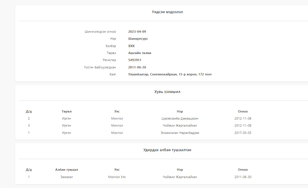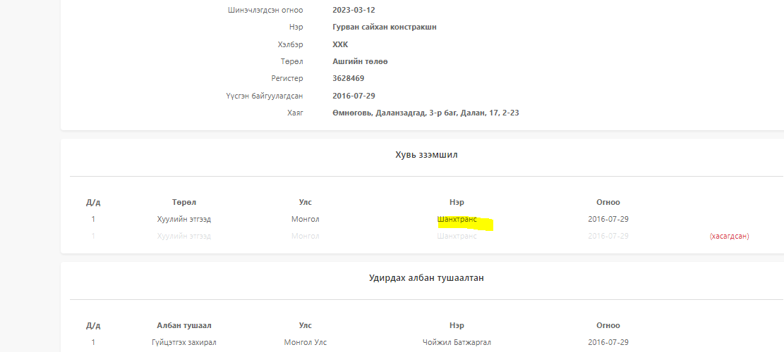 Тус компанийн гүйцэтгэх захирлаар Ч.Батжаргал ажилладаг бөгөөд хувьцаа эзэмшигч нь “Шанхтранс” ХХК. Түүнчлэн тус компани нь Өмнөговь аймгийн хэмжээнд томоохон хэмжээний хэд хэдэн газар эзэмшиж, орон сууцны хороолол барихаар төлөвлөж байгаа бололтой. Угтаа “Гурван сайхан констракшн” ХХК-ийг гадаад худалдааны чиглэлээр долоон жилийн өмнө байгуулж байжээ.