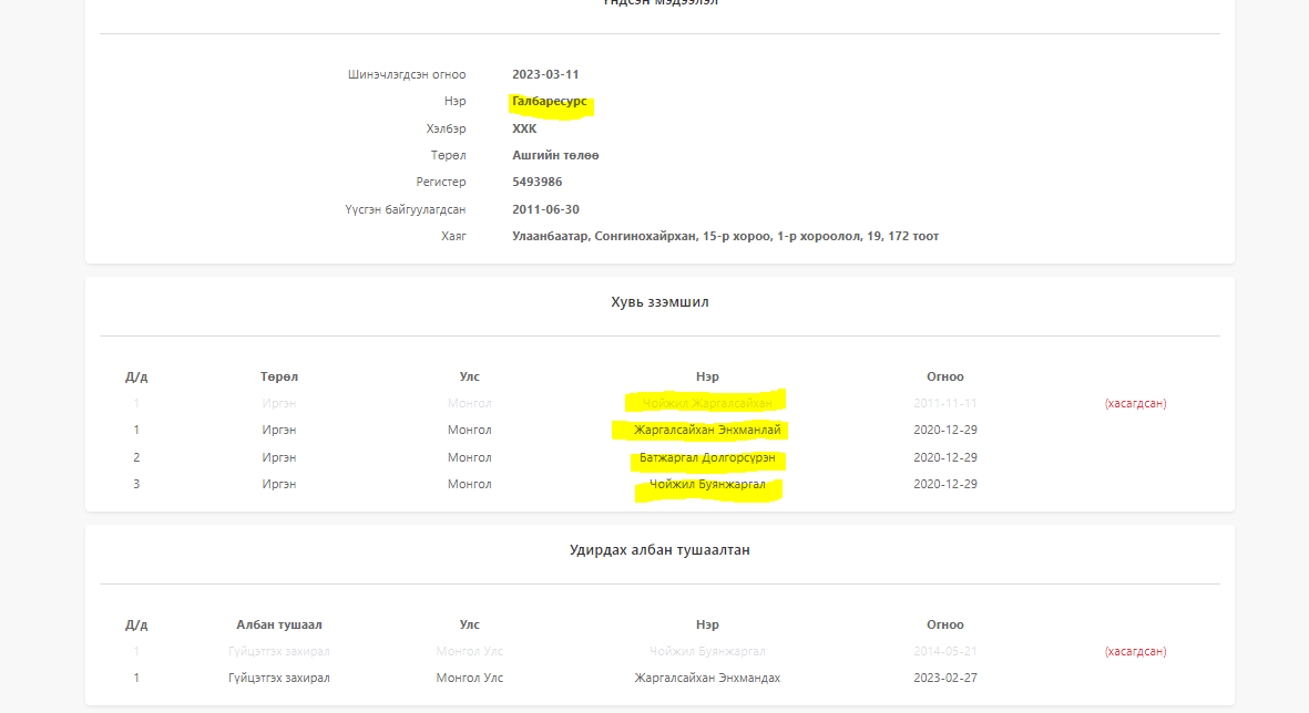 Өмнөговь аймгийн ИТХ дахь Ардчилсан намын бүлгийн дарга Ч.Жаргалсайхан төрд зүтгэхийн хажуугаар аймгийнхаа иргэдийн төлөө, намынхаа “ах” нарынхаа төлөө чөмгөө дундартал зүтгэдэг нэгэн бололтой. Дээрээс нь халаасан дахь 44 компанийнхаа төлөө зүтгэж байна гэх. Өмнөговь аймгийн ИТХ дахь Ардчилсан намын бүлгийн дарга Ч.Жаргалсайхан хэн хэнтэй хамтарч, ямар 44 компани эзэмшдэг вэ гэдгийг танилцуулж байна.