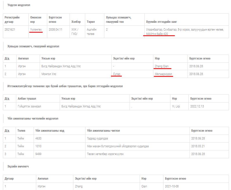 Тайлбар: "Үүлэнгөү" ХХК-ийн бүртгэл