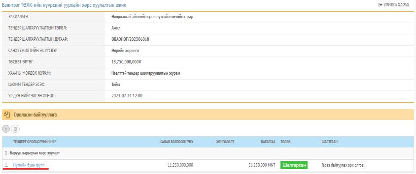222233УИХ-ЫН ГИШҮҮН Ж.ЗОЛЖАРГАЛ АХДАА ТЕНДЕР ОЛЖ ӨГДӨГ ИНЖЕНЕР ҮҮ