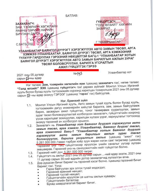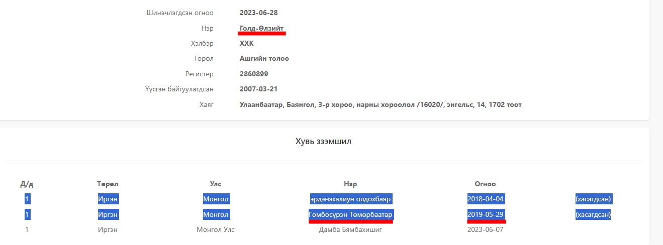 2. Я.Эрдэнэсайхан УИХ-ын гишүүн Ж.Ганбаатартай хоршиж, Баянгол дүүргийг “эрхшээж” байх үедээ тендерээр түрийвчээ түнтийлгэж амжсан нэгэн аж. Тодруулбал, Я.Эрдэнэсайханы төрсөн эгч Я.Эрдэнэчимэгийн нөхөр Гомбосүрэнгийн Төмөрбаатар “Голд Өлзийт” ХХК-ийн эзэмшигчээр 2019 оны тавдугаар сарын 29-нд бүртгүүлсэн. Маргааш нь буюу 2019 оны тавдугаар сарын 30-нд ЗТХЯ-наас Баянгол дүүргийн VI хорооны автозамыг засварлах хоёр тэрбум төгрөгийн тендер, Баянгол дүүргийн VII хорооны автозамыг засварлах хоёр тэрбум төгрөгийн тендер гэсэн нийт дөрвөн тэрбум төгрөгийн хоёр тендер зэрэг зарласан. Гэтэл Я.Эрдэнэсайханы хүргэн ах Г.Төмөрбаатар энэ хоёр тендерт “Голд Өлзийт” ХХК-аар оролцоод шалгарчихсан байгаа юм. Өөрөөр хэлбэл, Г.Төмөрбаатар “Голд өлзийт” ХХК-ийг эзэмшигч болсныхоо ердөө маргааш нь 4.0 тэрбум төгрөгийн хоёр тендерт материалаа явуулаад шалгарчихсан гэсэн үг. Илүү ноцтой нь, Я.Эрдэнэсайхан хүргэн ах Г.Төмөрбаатарынхаа нэр дээрх “Голд Өлзийт” ХХК-аар Баянгол дүүргээс анх дөрвөн тэрбум төгрөгийн тендер авч амтшаад, үргэлжлүүлэн 2020 онд 4.7 тэрбум, 2021 онд 5.4 тэрбум төгрөгийн тендер авсан байдаг аж.